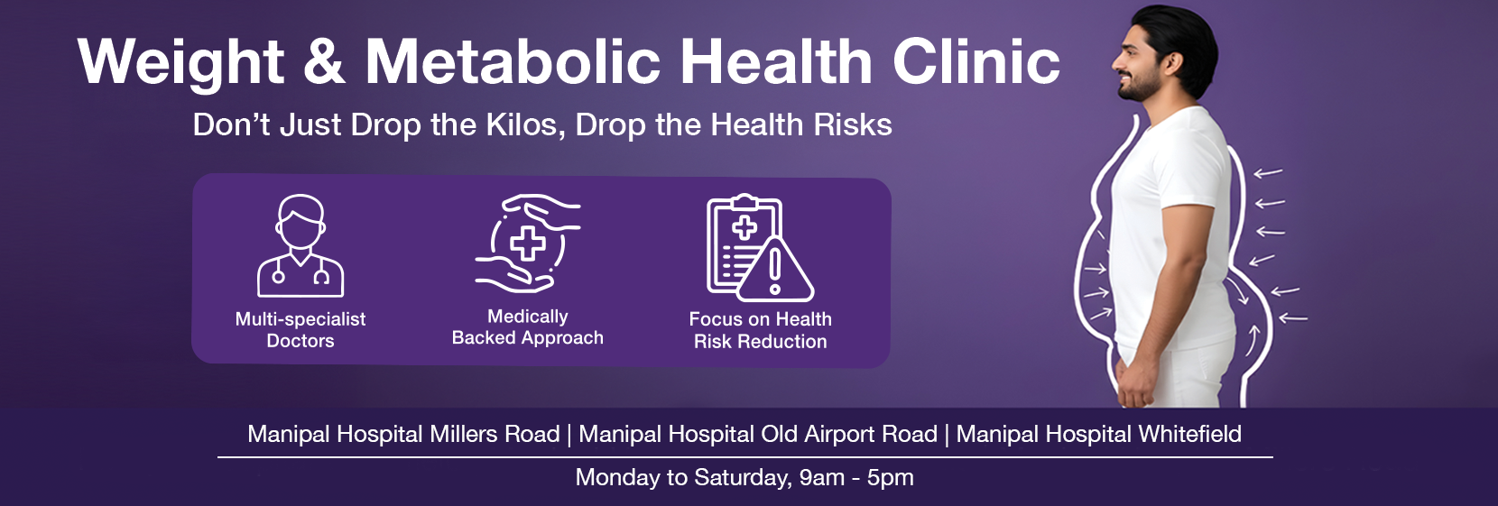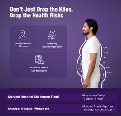 At Manipal Hospitals, our renowned team works to provide clinical excellence and compassionate care for you. Our commitment to innovation and patient safety makes us a leading choice for obesity solutions. We have helped patients achieve significant weight loss, leading to remarkable improvements in diabetes remission and substantial relief from joint pain. Our specialists work collaboratively to understand and create a personalised weight loss plan tailored to your health profile, and lifestyle goals. We are dedicated to providing solutions that are effective, safe, and sustainable.