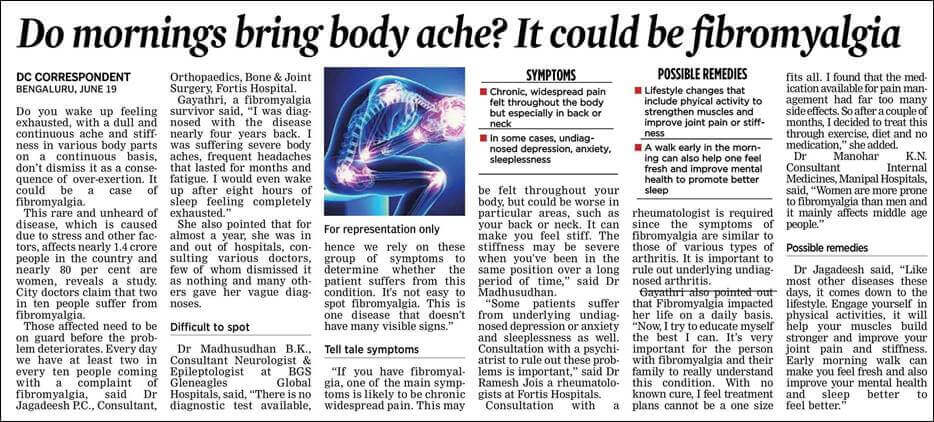 Dr K N Manohar on Morning Body Aches in Deccan Chronicle