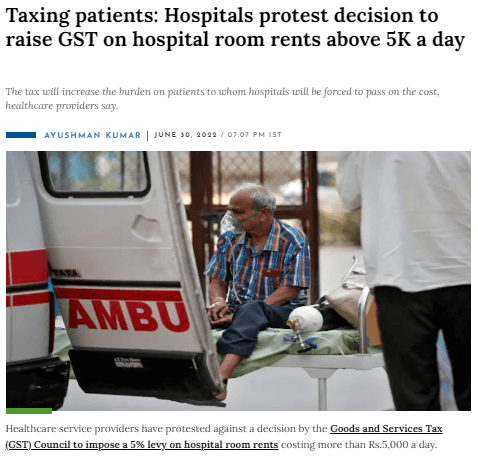 Headline: Taxing patients: Hospitals protest decision to raise GST on hospital room rents above 5K a day