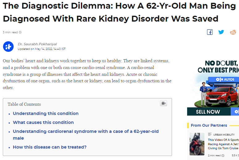 Headline: The Diagnostic Dilemma: How A 62-Yr-Old Man Being Diagnosed With Rare Kidney Disorder Was Saved