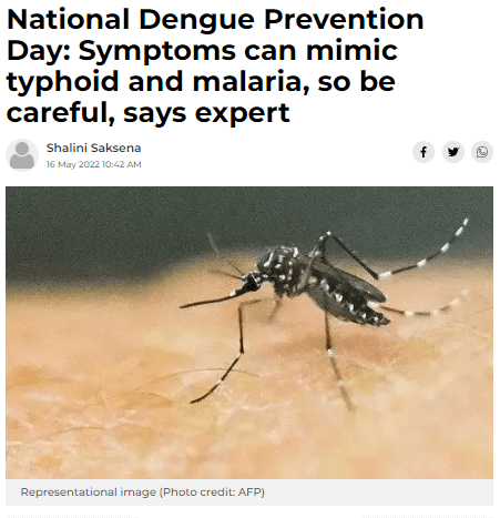 Headline: National Dengue Prevention Day: Symptoms can mimic typhoid and malaria, so be careful, says expert