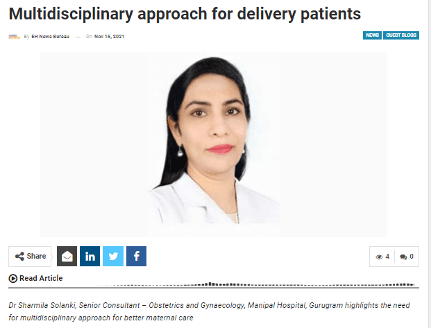 Dr. Sharmila Solanki, Senior Consultant – Obstetrics and Gynaecology, Manipal Hospital, Gurugram.