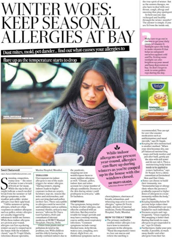 Sneezing, congestion, runny nose — the onset of winter is not a breath of fresh air for many. While the nip in the air might indicate a much-needed break from the summer or fall allergy symptoms, as the weather gets colder, winter allergies rear their ugly head. “Unlike autumn or spring allergies, which are often responses to outdoor allergens such as pollen, winter allergies are usually triggered by substances inside our homes. While these indoor allergens are present year-round, allergies can flare up during winters as you’re cooped up in the house with the windows closed. During winters, staying indoors leads to higher exposure to dust on carpets, furniture, toys etc, insects like mites and cockroaches, and pets carrying dust and pollen on their furs. Those susceptible to allergies could be worst hit and conditions such as asthma, seasonal rhinitis, urticaria may worsen,” informs Dr Charu Goel Sachdeva, HoD and consultant of internal medicine at HCMCT Manipal Hospitals, Dwarka, Delhi.