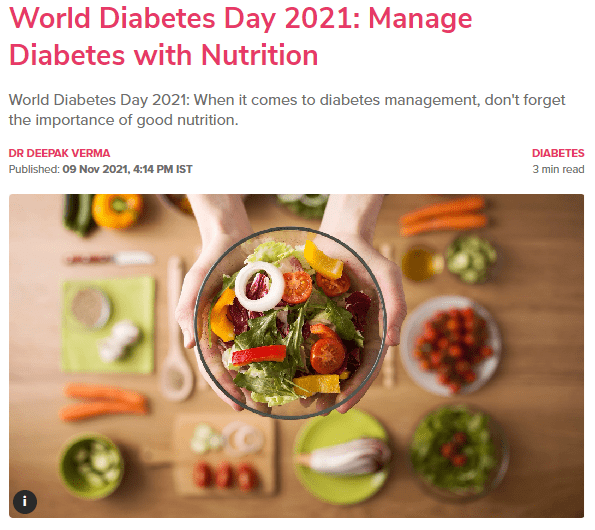 Headline: World Diabetes Day 2021: Manage Diabetes with Nutrition