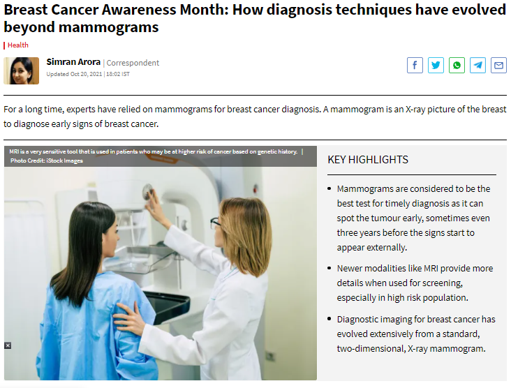 Headline – Breast Cancer Awareness Month: How diagnosis techniques have evolved beyond mammograms
