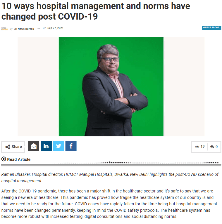 Headline- 10 ways hospital management and norms have changed post-COVID-19