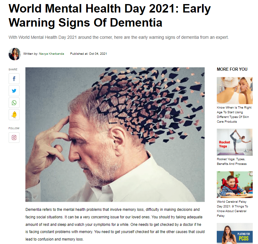 World Mental Health Day 2021: Early Warning Signs Of Dementia