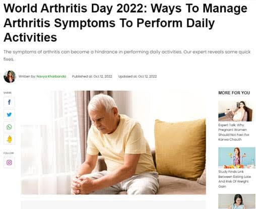 Link: https://www.onlymyhealth.com/world-arthritis-day-quick-fixes-for-arthr... https://www.onlymyhealth.com/w...