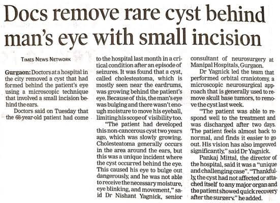 Topic: Gurugram: Doctors remove rare cyst behind man’s eye with small incision