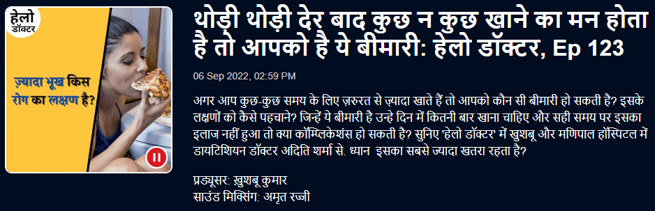 Headline: थोड़ी थोड़ी देर बाद कुछ न कुछ खाने का मन होता है तो आपको है ये बीमारी: हेलो डॉक्टर