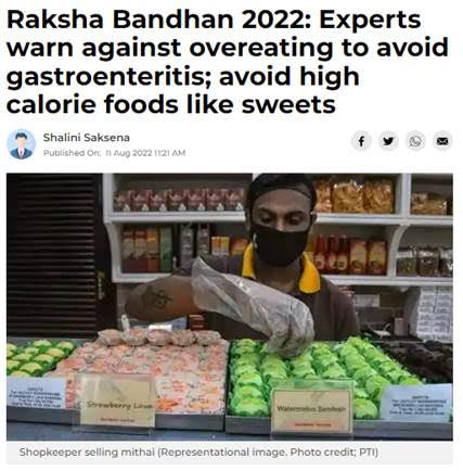 Headline: Raksha Bandhan 2022: Experts warn against overeating to avoid gastroenteritis; avoid high-calorie foods like sweets