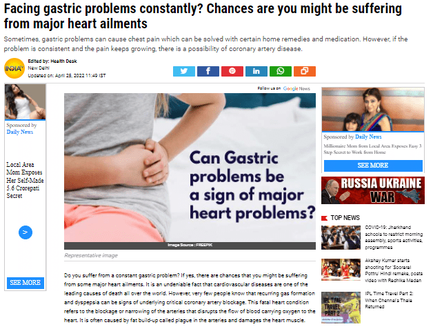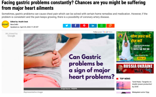 Headline: Facing gastric problems constantly? Chances are you might be suffering from major heart ailments