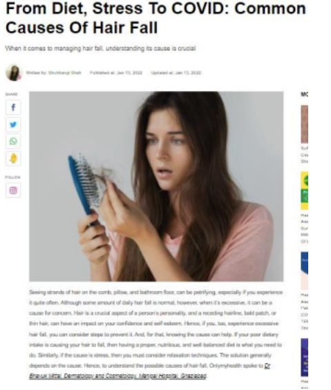 Link: https://www.onlymyhealth.com/common-causes-of-hair-fall-as-per-dermato... https://www.onlymyhealth.com/c...