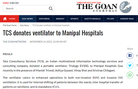 Link: https://www.thegoan.net/goa-news/%EF%BB%BFtcs-donates-ventilator-to-ma... https://www.thegoan.net/goa-ne...