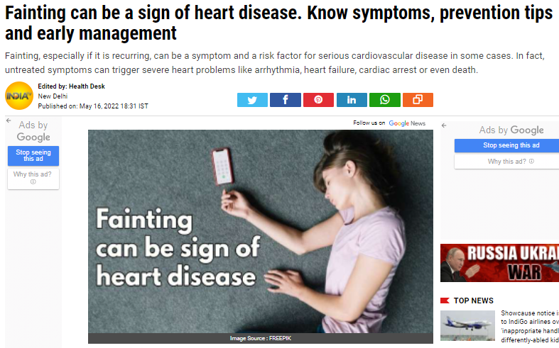 Headline: Fainting can be a sign of heart disease. Know symptoms, prevention tips and early management