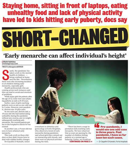 This is a result of improved nutrition and reduction in childhood infection. There is an increase in chances of precocious puberty if the child is obese, or slightly overweight /high BMI Index; however, this is not applicable for all children, said Dr. Vijaya Sherbet, Consultant Obstetrics and Gynaecology, Manipal Hospital Hebbal
