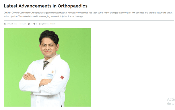 Orthopaedics has seen some major changes over the past few decades and there is a lot more that is in the pipeline. The materials used for managing traumatic injuries, the technology, and the molecular biology have all promised greater advances in the field, said Dr. Kiran Chouka, Consultant – Orthopedic and Joint Replacement Surgeon, Manipal Hospital Hebbal