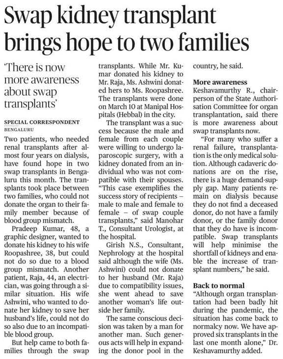 Link: https://www.thehindu.com/news/national/karnataka/swap-transplant-bring... https://www.thehindu.com/news/...
