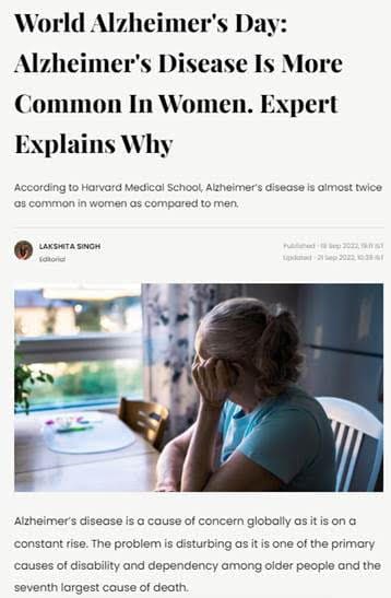 Headline: World Alzheimer's Day: Alzheimer's Disease Is More Common In Women. Expert Explains Why