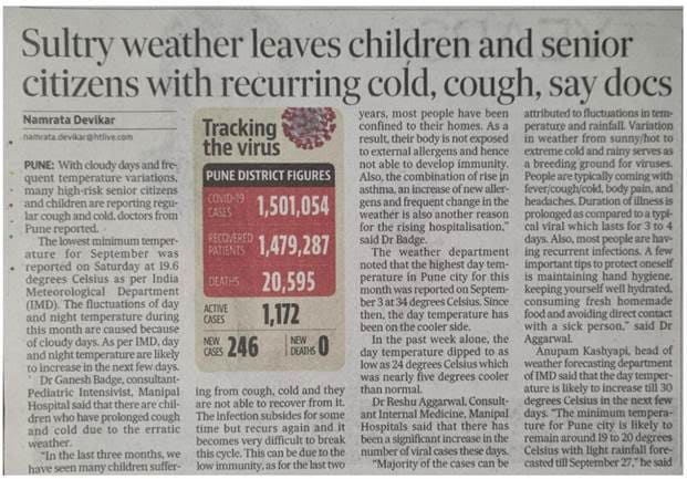 Headline: Sultry weather leaves children with recurring cold, cough in Pune