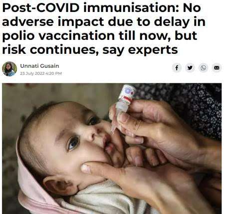 Headline: Post-COVID immunization: No adverse impact due to delay in polio vaccination till now, but risk continues, say experts