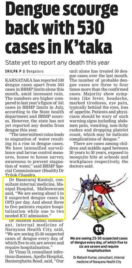 Doctor quoted: Dr. Basavaraj Kuntoji, Consultant - Internal Medicine, Manipal Hospital Malleshwaram