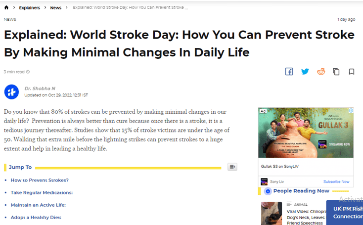 Topic: World Stroke Day: How You Can Prevent Stroke By Making Minimal Changes In Daily Life