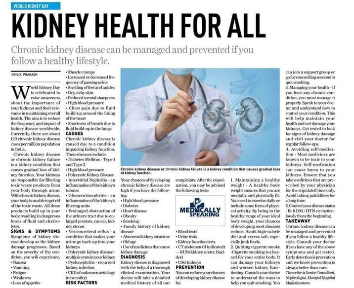 Doctor quoted: Dr. G K Prakash, Senior Consultant Nephrology, Manipal Hospital Malleshwaram; Dr. Partha Pradeep Shetty, Consultant Nephrologist and Transplant Physician, Manipal Hospital Millers Road