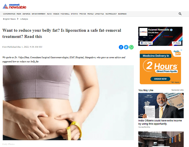Doctor quote: Dr. Vidya Bhat, Consultant Surgical Gastroenterologist