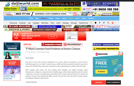 Topic: 9 Most Common Foot Problems of Senior Citizens
