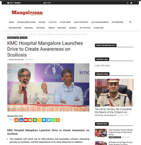 Topic: KMC Hospital, Mangalore, launches drive to create awareness on Scoliosis
