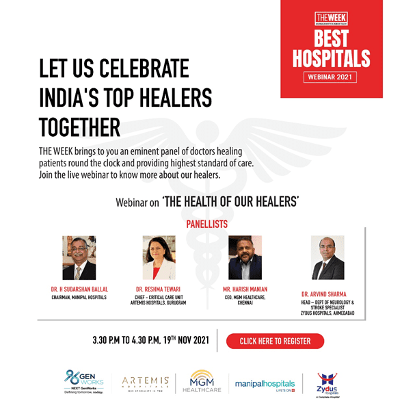 The Week brings to you an eminent panel of doctors healing patients round the clock and providing the highest standards of care. Dr. H Sudarshan Ballal, Chairman, Manipal Health Enterprises Pvt Ltd is among the panellists in the webinar on 'The Health of our Healers' between 3.30 pm to 4.30 pm today on 19th November 2021.