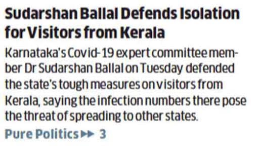 Dr Sudarshan Ballal said, “If your neighbour’s house is on fire, it can spread to us too. Karnataka has taken appropriate steps in isolation for visitors from Kerala and the subsequent one or two months are vital for us to see how well we can control the infection spread”, he said.