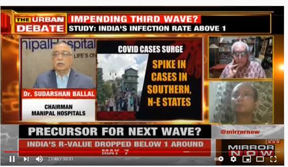 Dr H Sudarshan Ballal speaks on the impending third wave while advising to continue to adhere to strict Covid appropriate behavior on MIRROR NOW last night