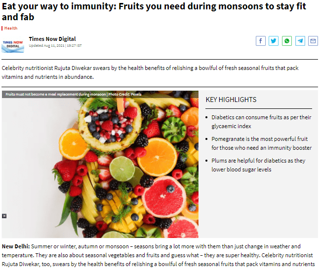Summer or winter, autumn or monsoon – seasons bring a lot more with them than just change in weather and temperature. They are also about seasonal vegetables and fruits and guess what – they are super healthy. Celebrity nutritionist Rujuta Diwekar, too, swears by the health benefits of relishing a bowlful of fresh seasonal fruits that pack vitamins and nutrients in abundance. And during monsoons, when pakoras, samosas, and tea become the staple, we recommend bringing some seasonal fruits to your table, and for good reason. Dt. Deeksha Ahalawat – Consultant, Nutrition and Dietetics – HCMCT Manipal Hospitals, Dwarka, recently spoke about the healthiest seasonal fruits that one can enjoy during monsoons and keep their nutrient intake high.