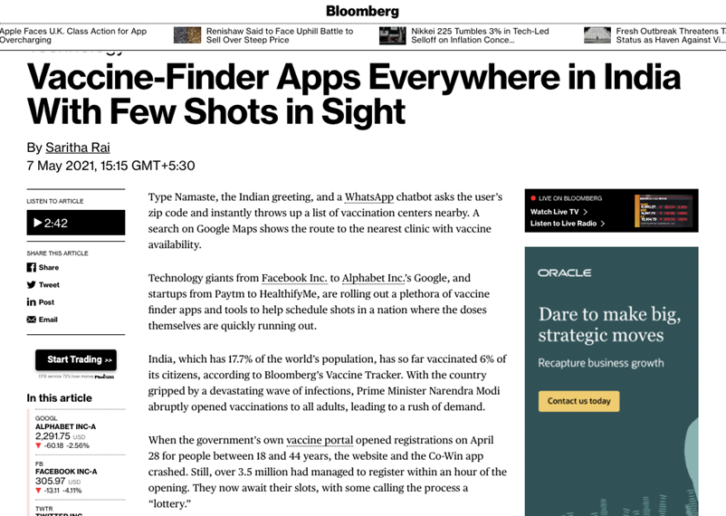 Link: https://www.bloomberg.com/news/articles/2021-05-07/vaccine-finder-apps... https://www.bloomberg.com/news...