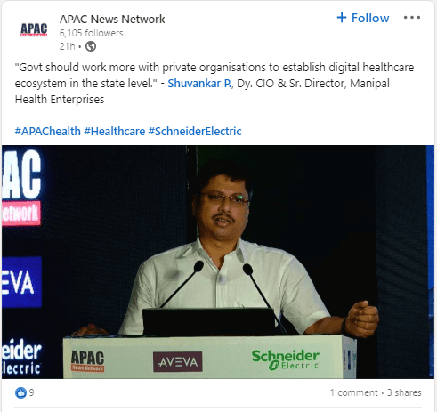 Spokesperson quoted: Mr. Shuvankar Pramanick, Deputy CIO, Manipal Health Enterprises Pvt. Ltd