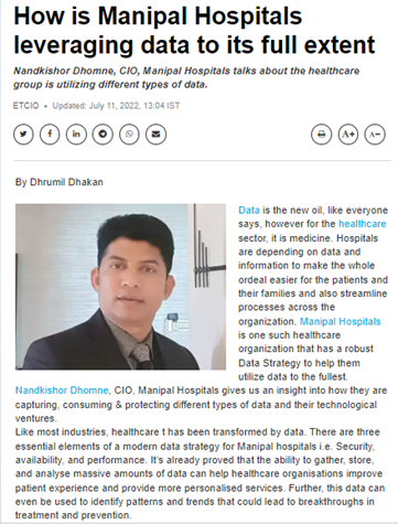 Spokesperson quoted: Mr. Nandkishor Dhomne, CIO, Manipal Hospitals