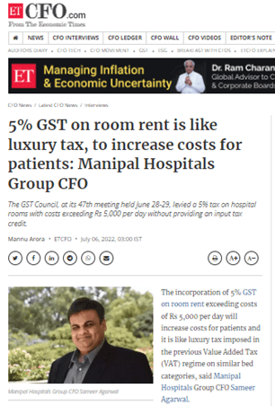 Spokesperson quoted: Mr. Sameer Agarwal, Group CFO, Manipal Health Enterprises Pvt. Ltd