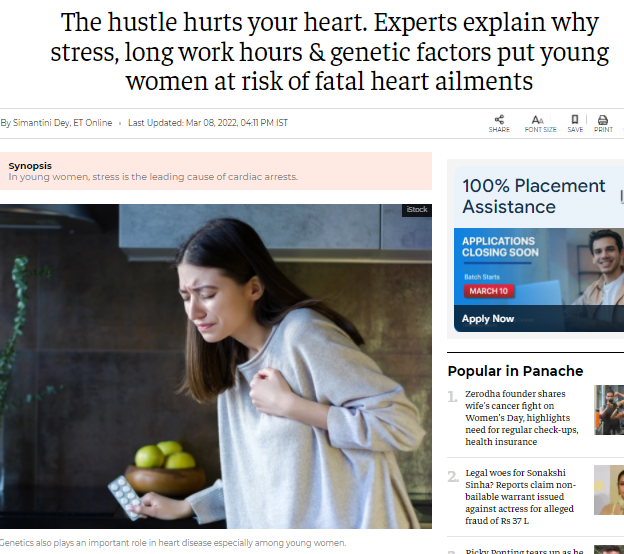 Headline: The hustle hurts your heart. Experts explain why stress, long work hours & genetic factors put young women at risk of fatal heart ailments
