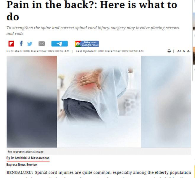 Doctor Quote: Dr Amrithlal A Mascarenhas, consultant - spinal cord surgery, Manipal Hospital Millers Road