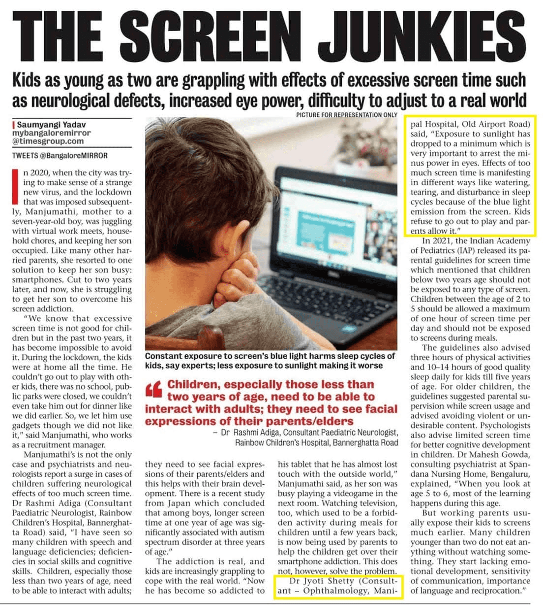 Doctor quoted: Dr. Jyoti Shetty, Consultant - Opthalmologist, Manipal Hospital Old Airport Road