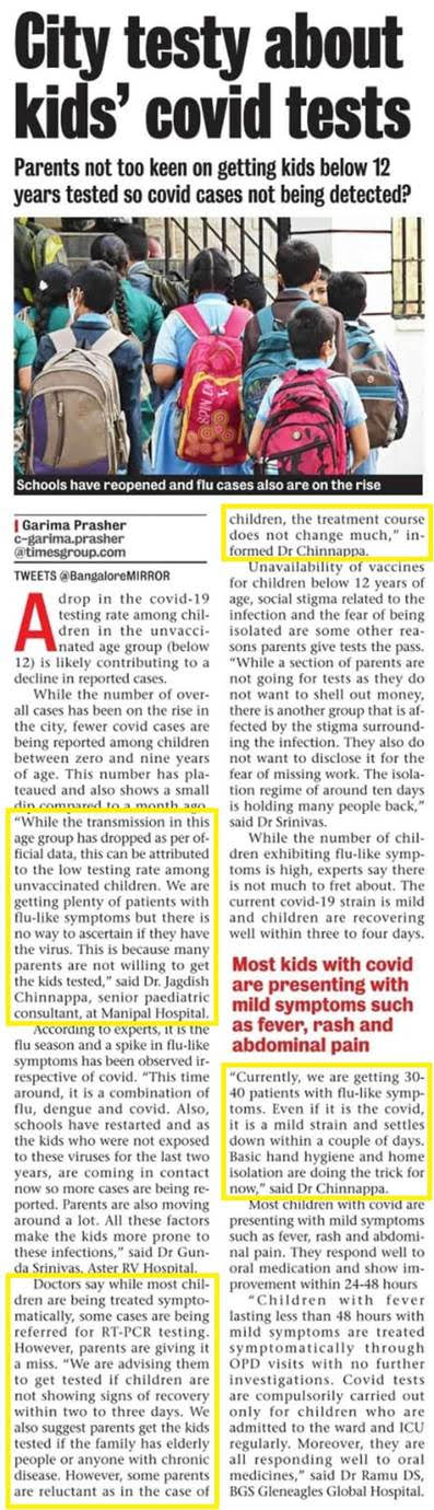 Topic: Bengaluru testy about kids’ covid tests