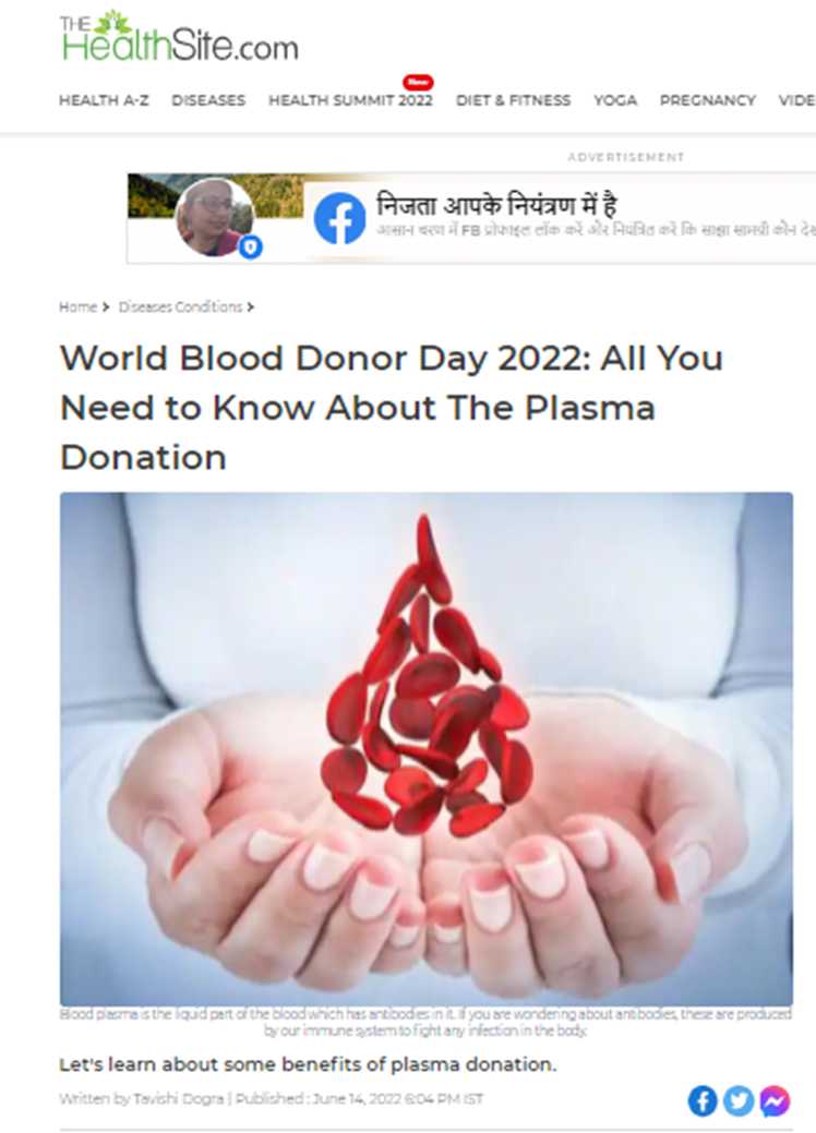 Topic: World Blood Donor Day 2022: All You Need to Know About The Plasma Donation