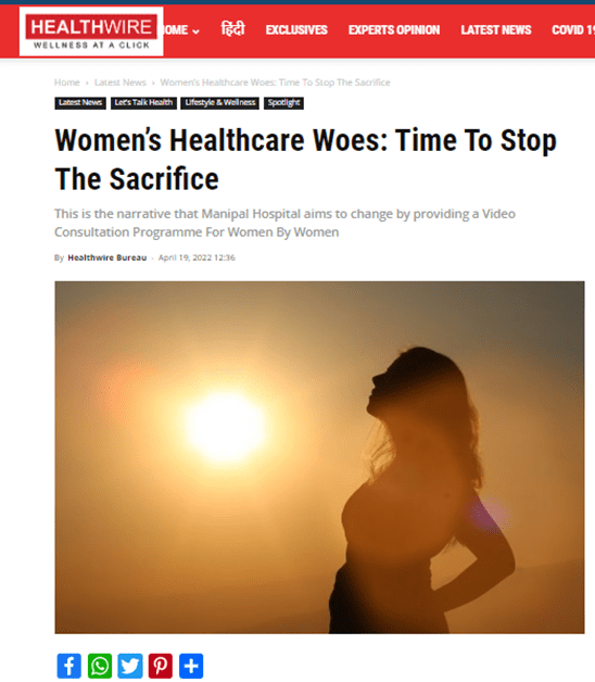 Health includes physical, mental, and social aspects. A women’s health changes from infancy to senility in all these three dimensions and requires attention in every stage of life. This initiative is a feather in the hat, for us women, who have crossed many barriers and achieved great heights in various fields, said Dr. Madhumitha, Physician, Manipal Hospital Old Airport Road