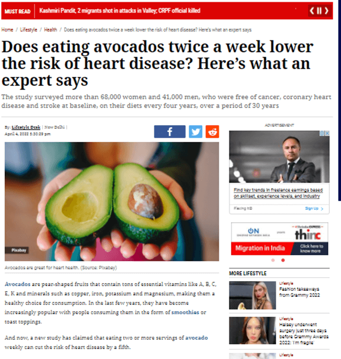 The benefits observed in this study may not be translated to a randomised study as the benefits may be the outcome of a healthy lifestyle along with consuming avocado, said Dr. Ranjan Shetty, HOD & Consultant Interventional Cardiology, Manipal Hospital Old Airport Road.