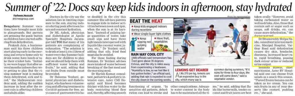 Topic: Summer of 2022: Bengaluru doctors say to keep kids indoors in the afternoon, stay hydrated