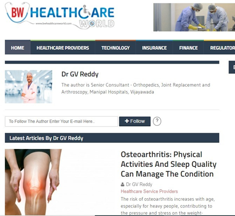 On the occasion of World Arthritis Day, please find below the link of the authored article of Dr. GV Reddy, Senior Consultant - Orthopedics, Joint Replacement and Arthroscopy from Manipal Hospitals, Vijayawada in BW Businessworld.