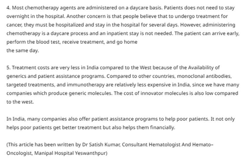 Doctor Quote: Dr Satish Kumar, Consultant Hematologist And Hemato–Oncologist, Manipal Hospital Yeshwanthpur